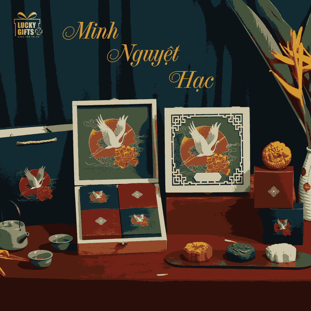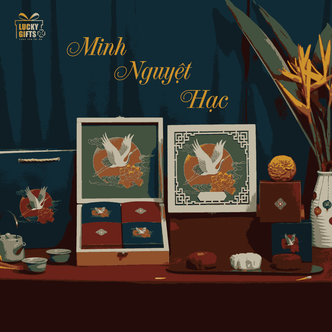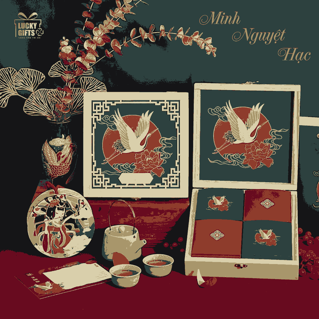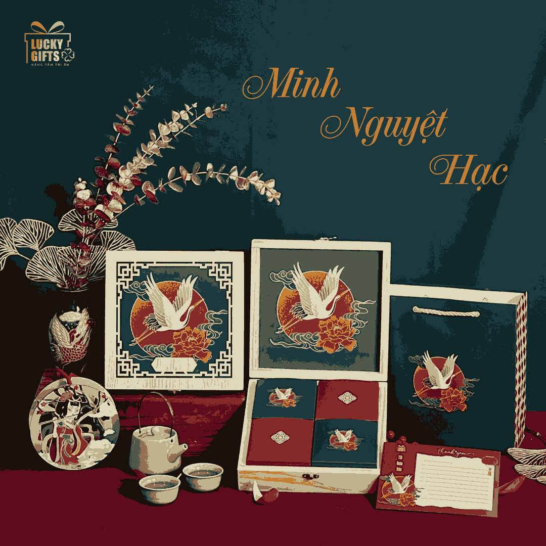 Minh Nguyệt Hạc là lựa chọn tinh tế cho những ai tìm kiếm quà tặng Trung Thu mang tính biểu trưng và sang trọng. Mẫu hộp sử dụng chất liệu gỗ phối họa tiết hạc – trăng, thể hiện lời chúc đoàn viên và trường thọ đến người nhận.